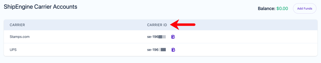 Once activated, you'll see the Carrier IDs for each carrier. These IDs are unique to your ShipStation API account and are what you'll use with various endpoints to do things like purchasing labels, comparing rates, and tracking packages.