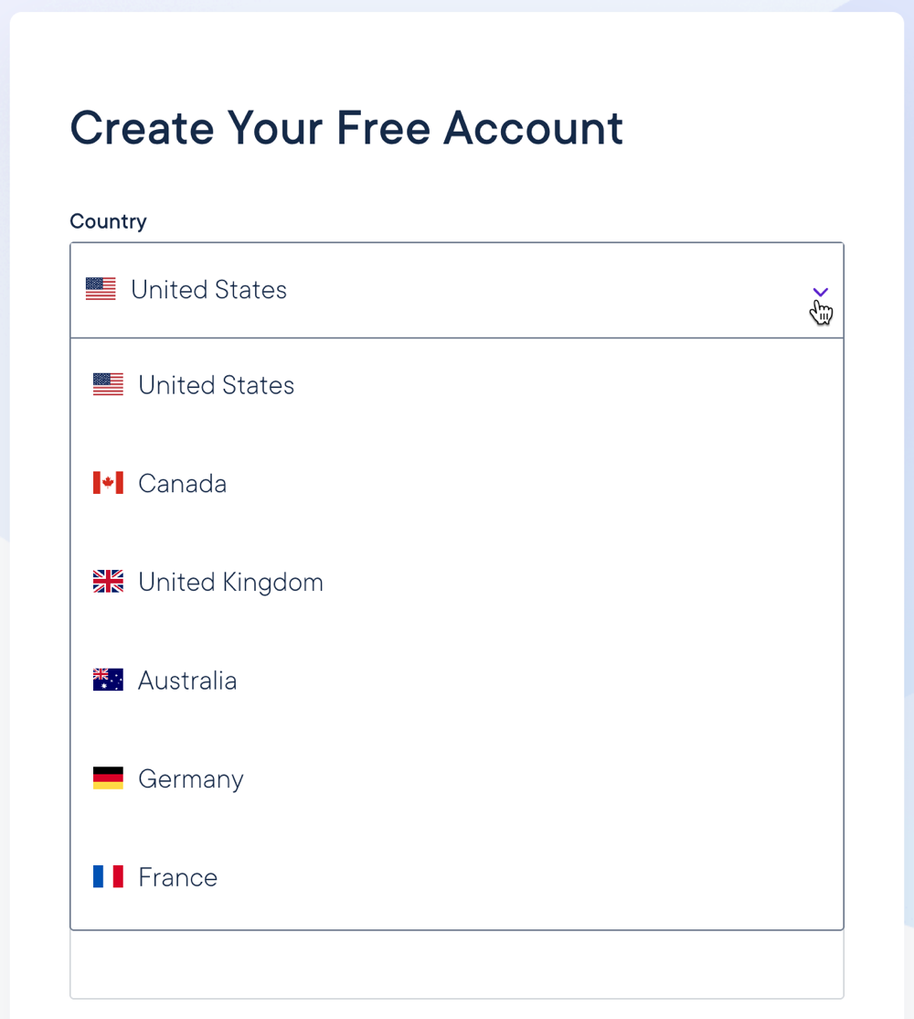 When you sign up for a ShipStation API account, you are prompted to select the country from which you will be shipping from the dropdown list.
